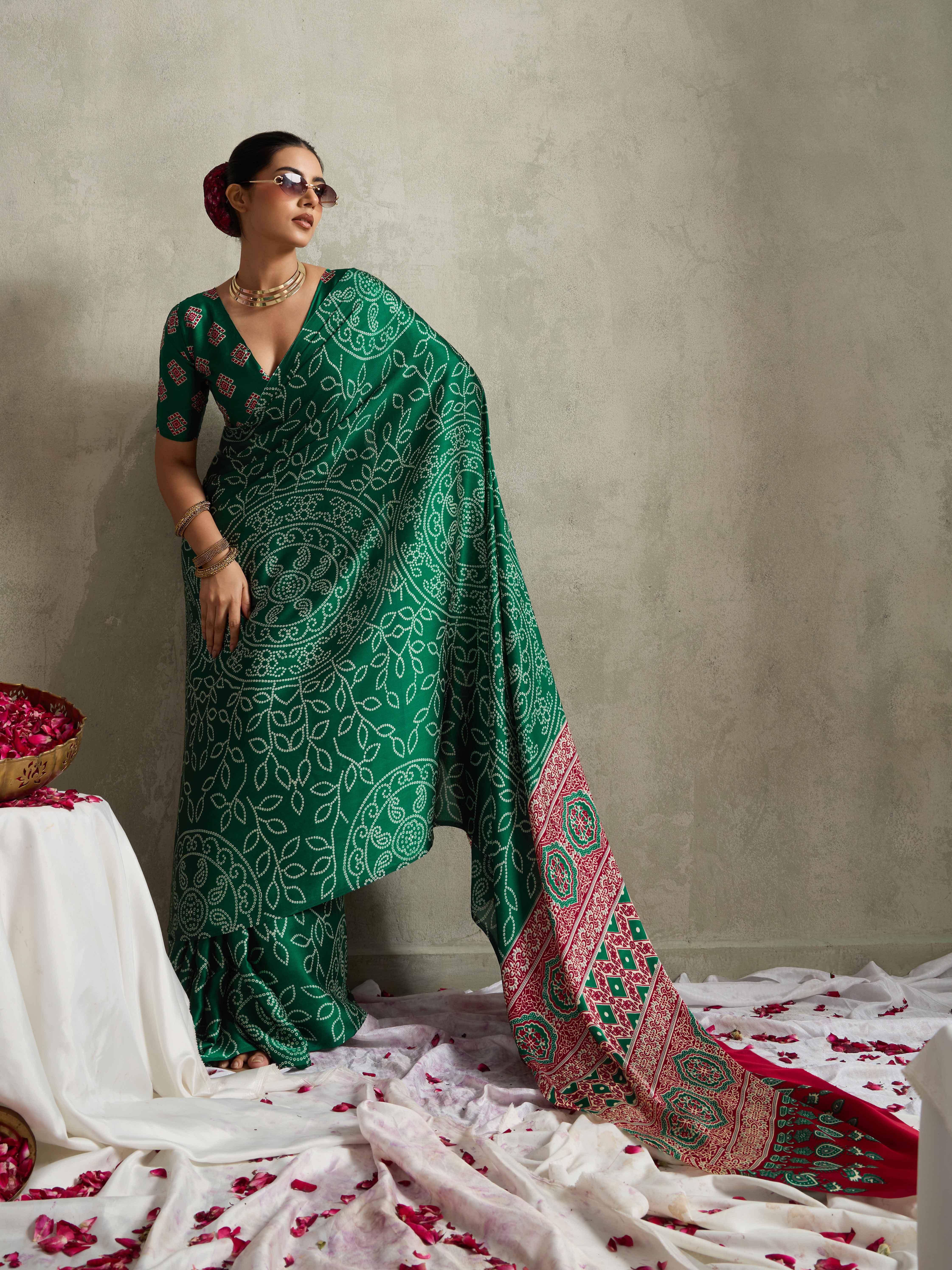 Green Color Rich Looks Designer Bandhani Printed Elegant Festive Saree