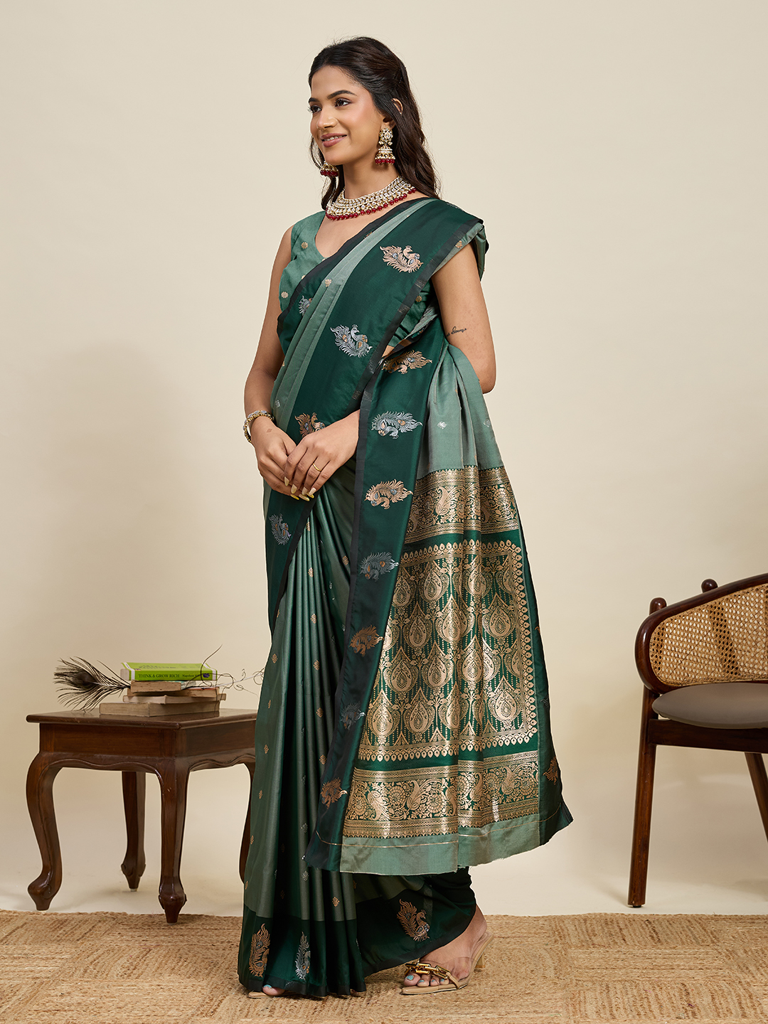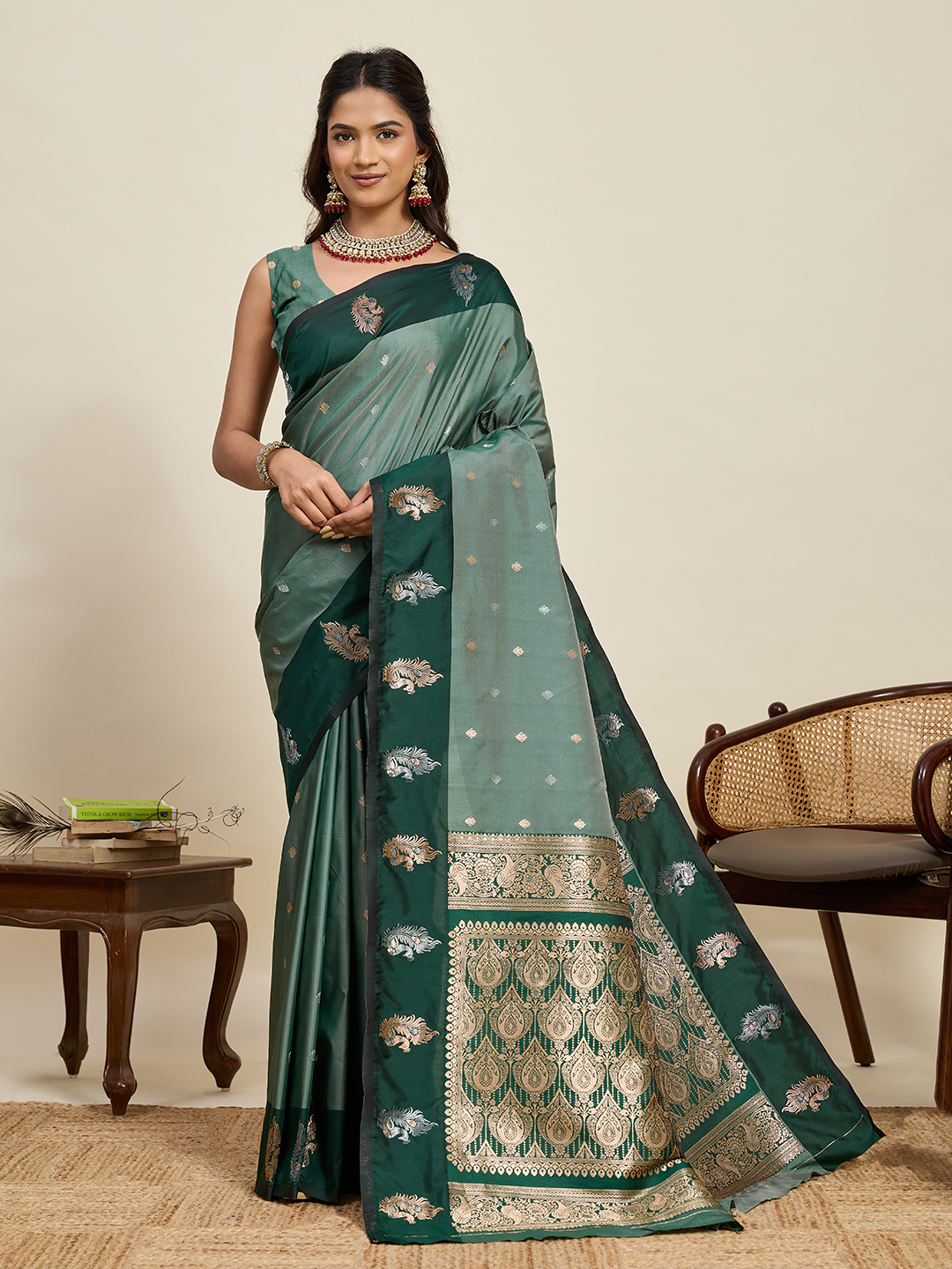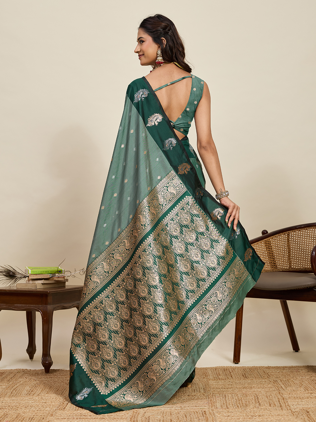 Green Color Soft Silk Fabric Designer Ethnic Woven Traditional Saree
