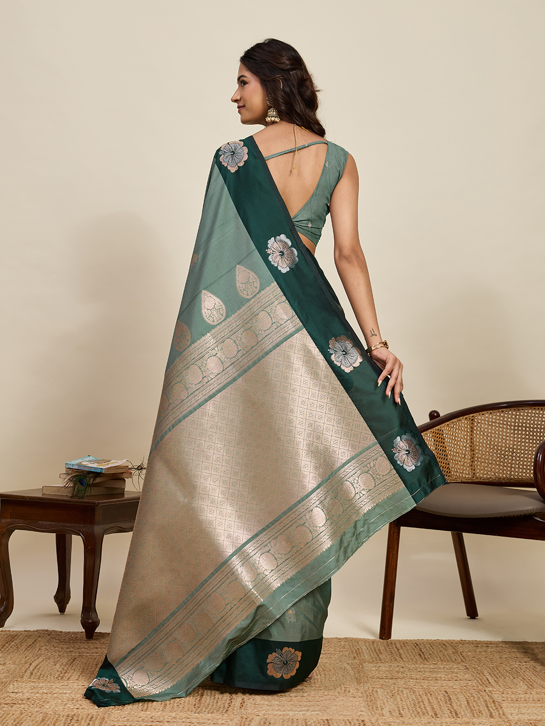 Green Color Soft Silk Fabric Woven Jari Designer Ethnic Indian Saree