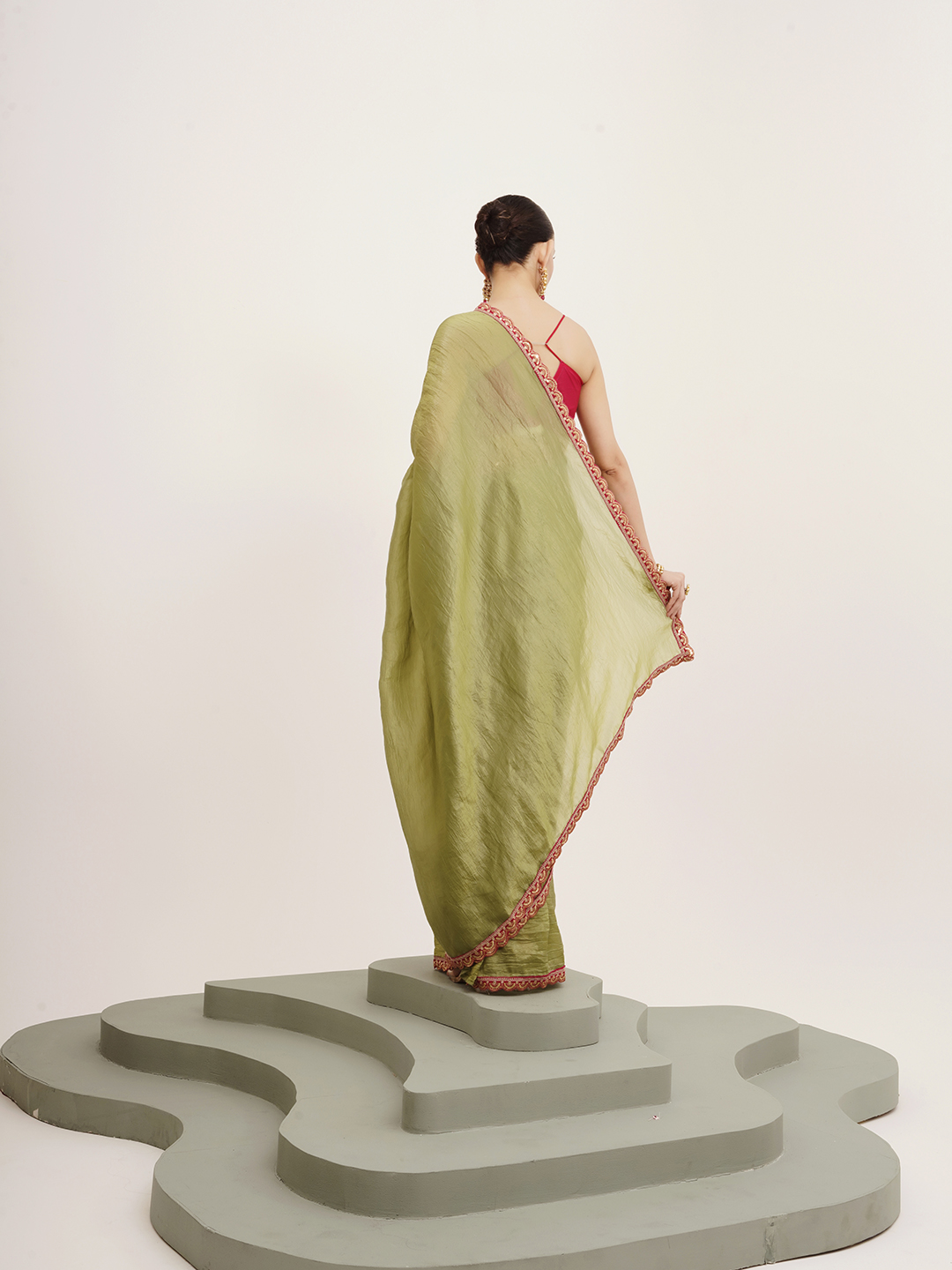 Green Color Tissue Fabric Embellished Sequinned Work Fancy Saree