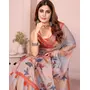 Grey Color Linen Cotton Fabric Designer Printed Formal Looks Sophisticated Saree
