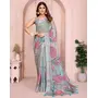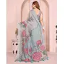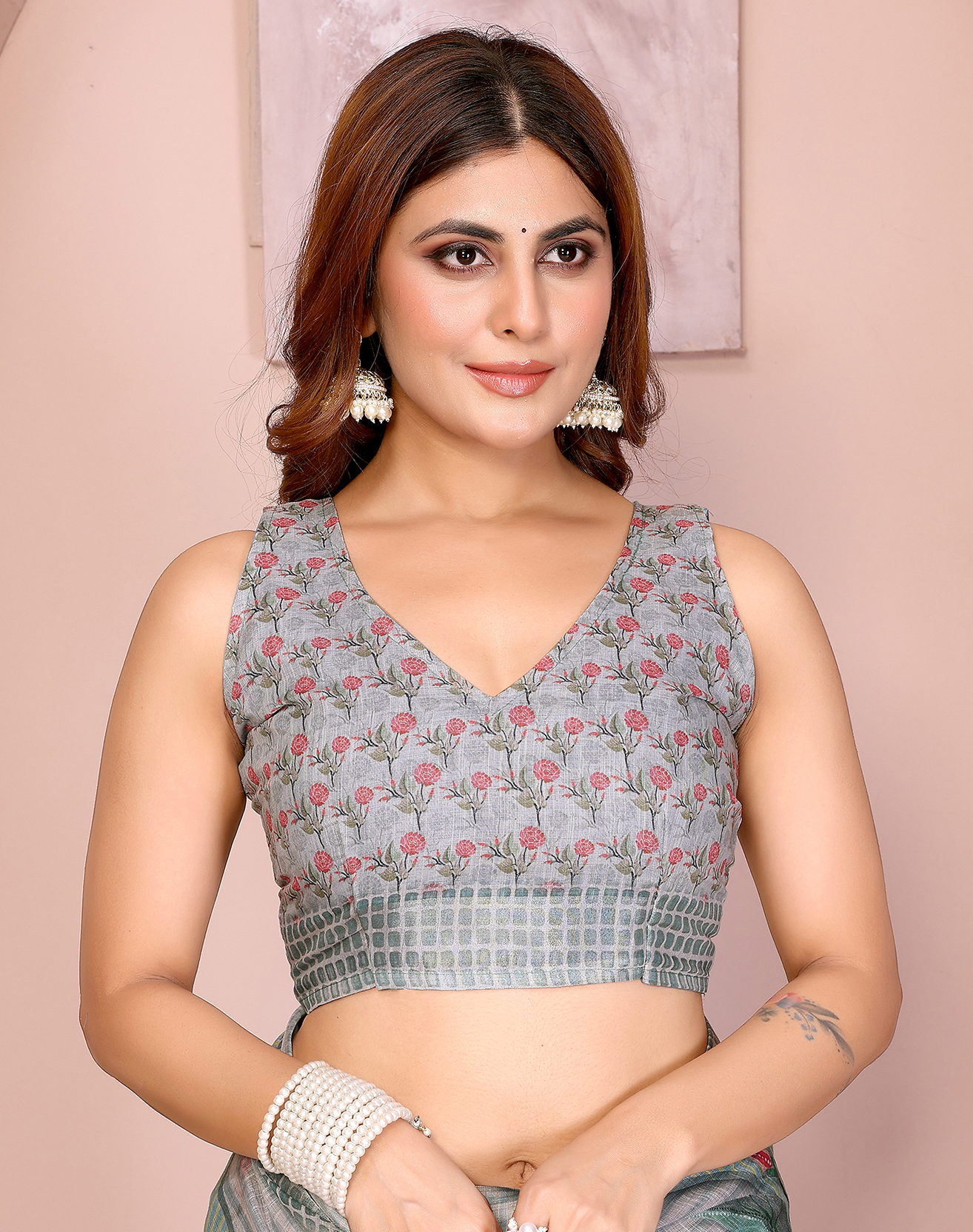Grey Color Linen Cotton Fabric Festive Looks Printed Saree