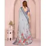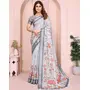 Grey Color Linen Cotton Fabric Festive Looks Printed Saree