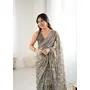 Grey Color Moss Satin Patta Printed Ethnic Partywear Saree