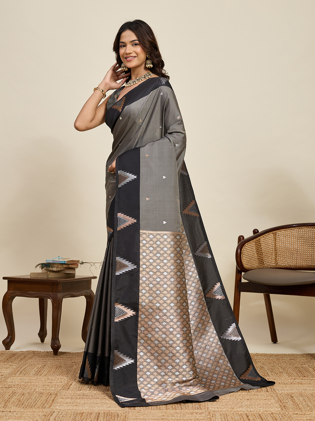 Grey Color Soft Silk Woven Jari Designer Saree