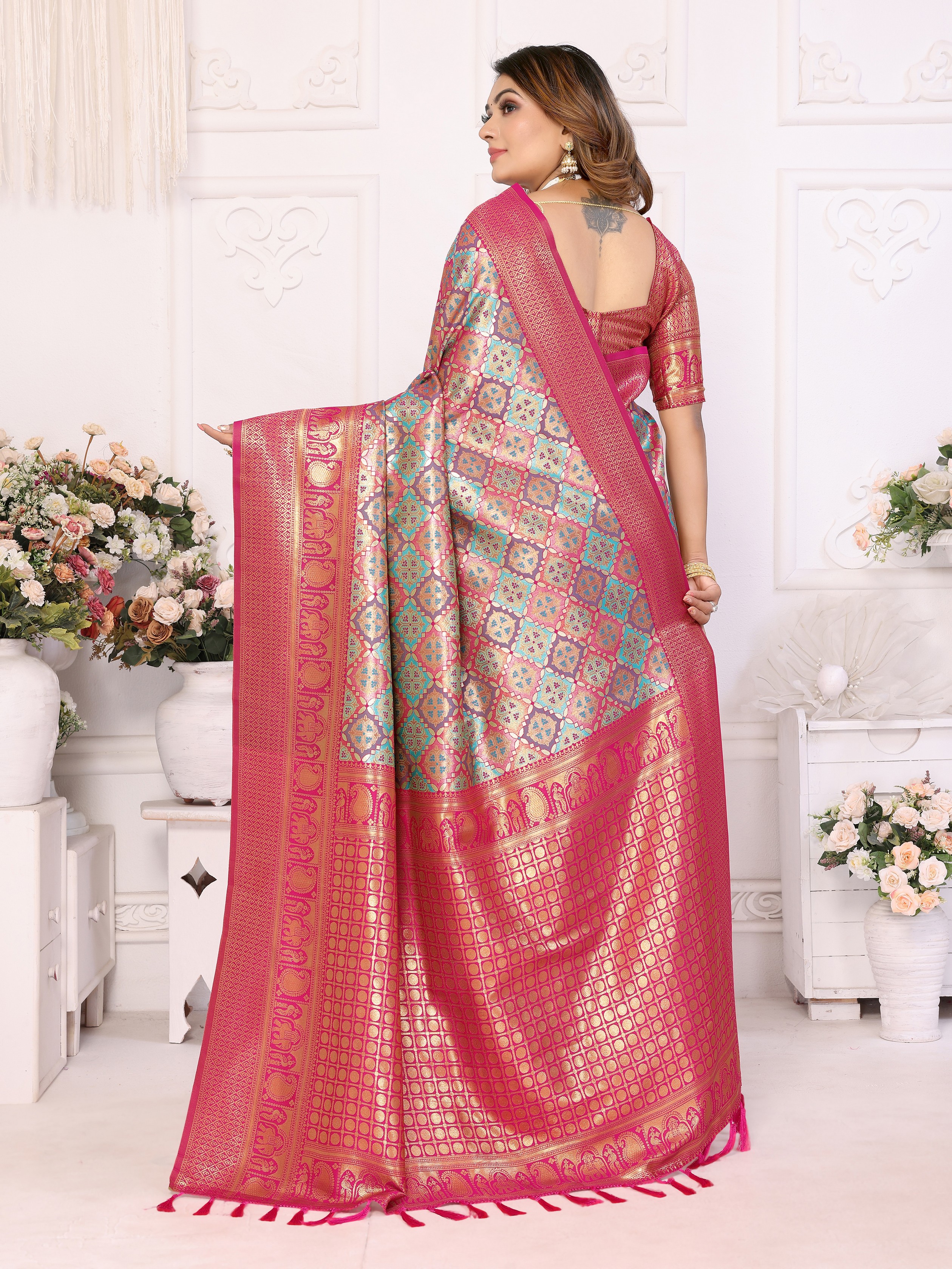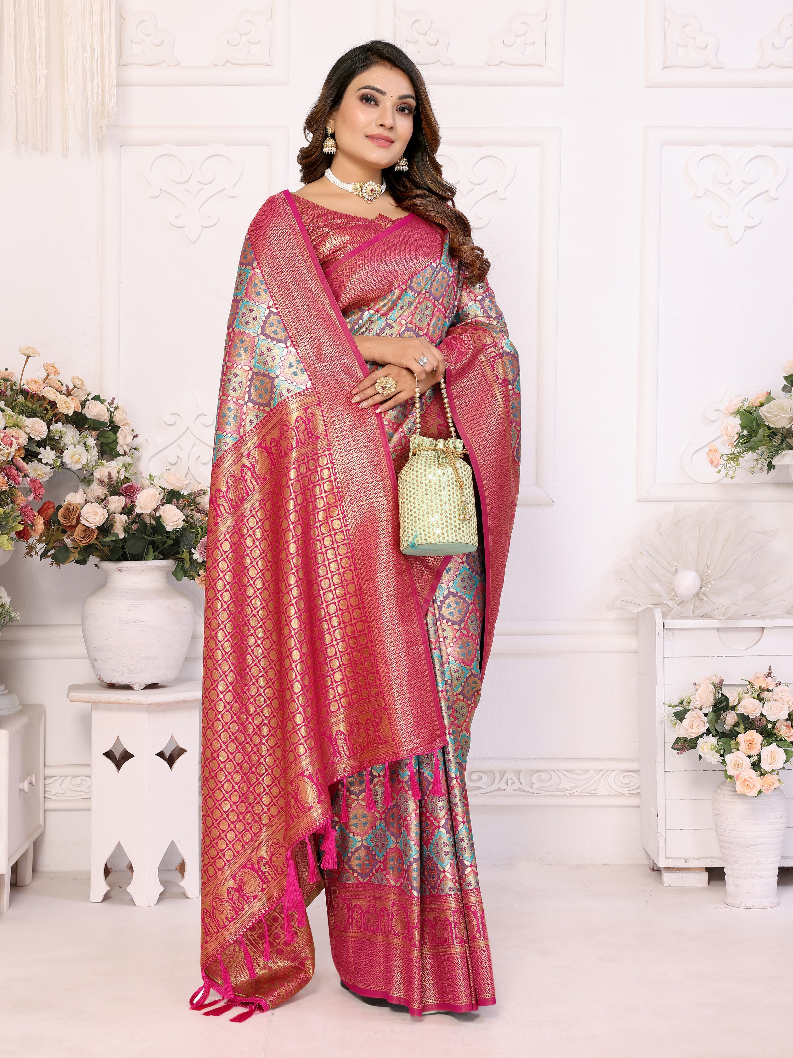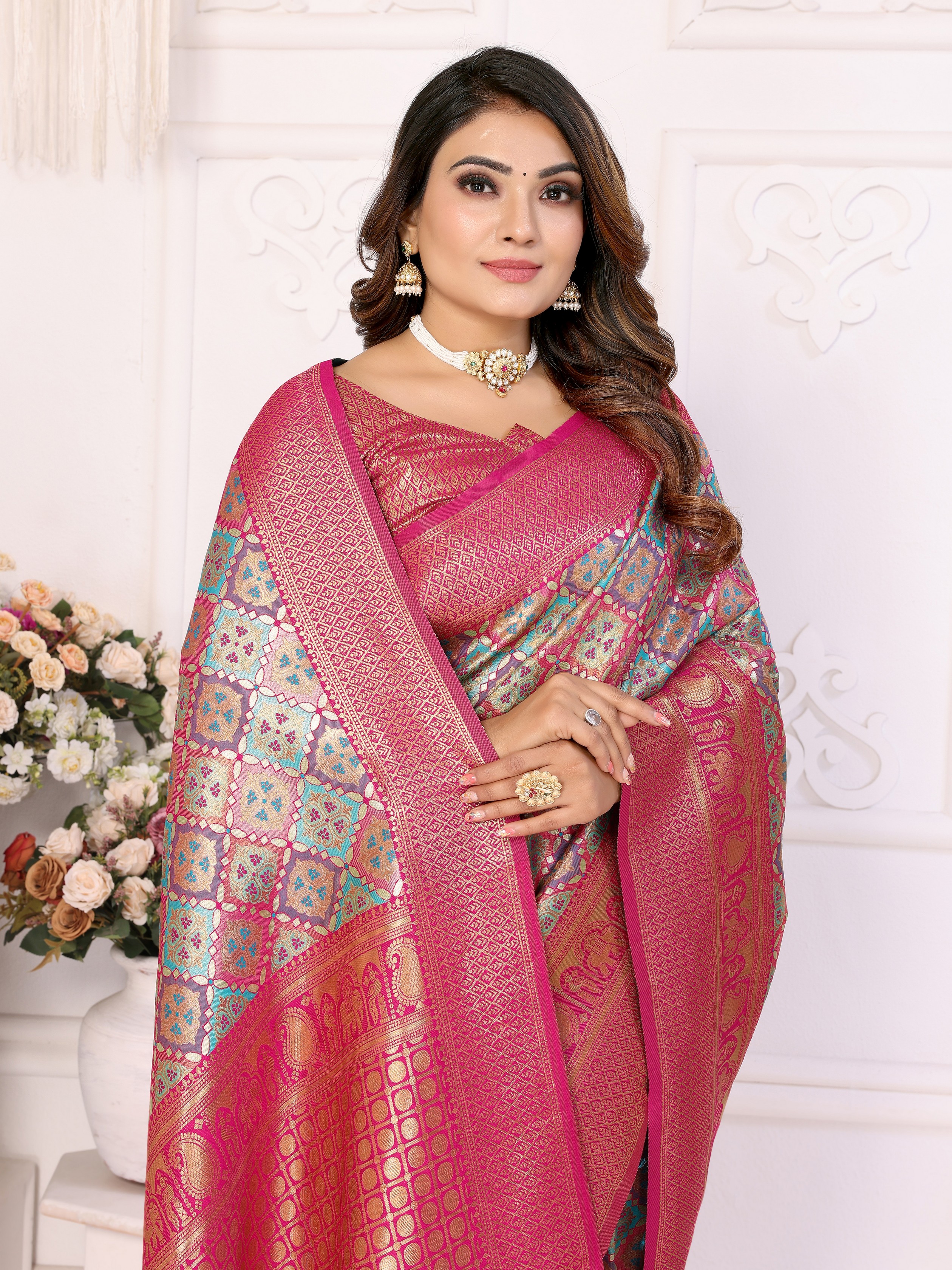 Heavy Zari Woven Designer Pink Color Banarasi Silk Saree