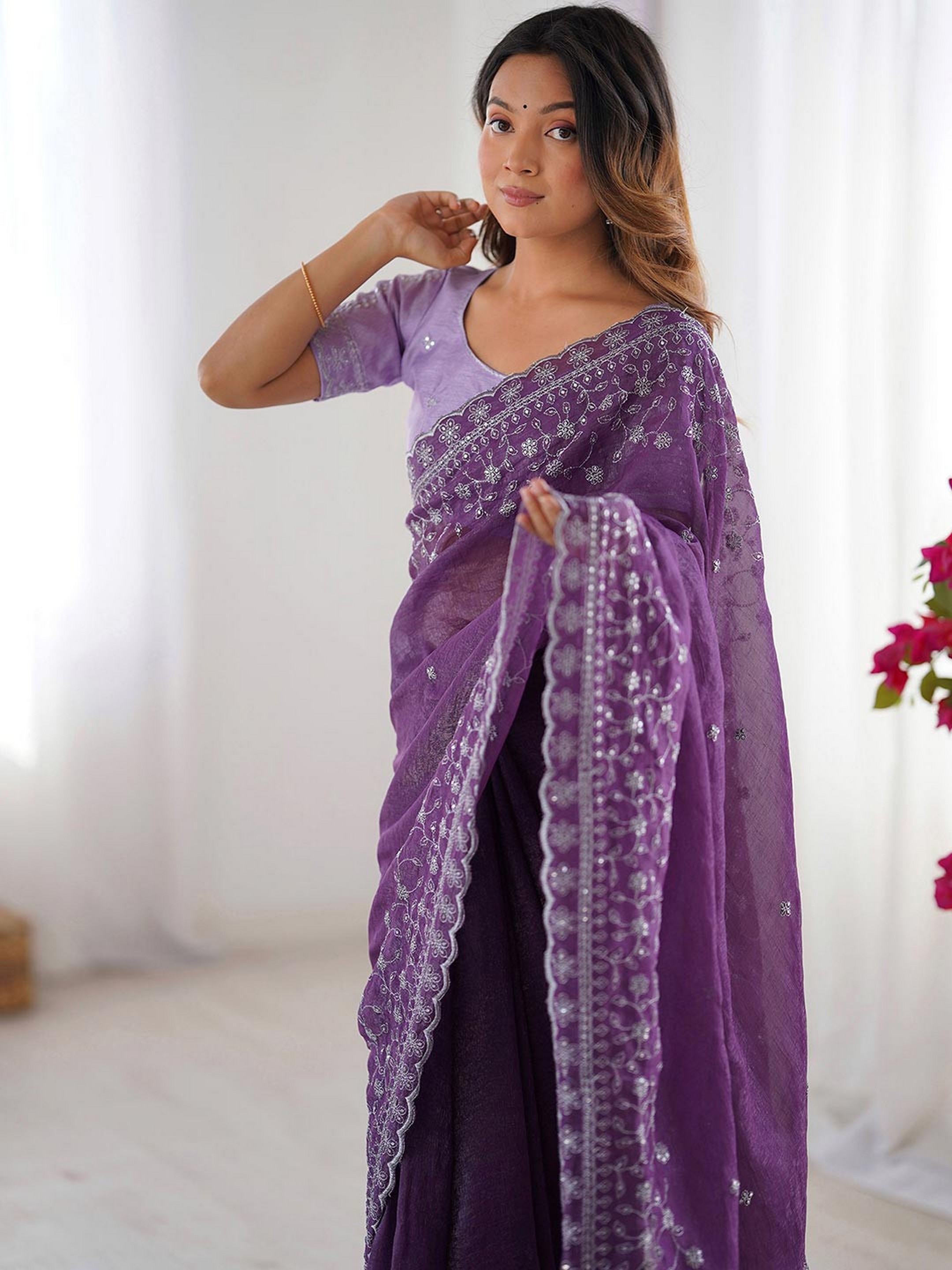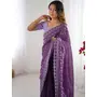 Lavender Color Crunchy Silk Fabric Embroidered Partywear Saree