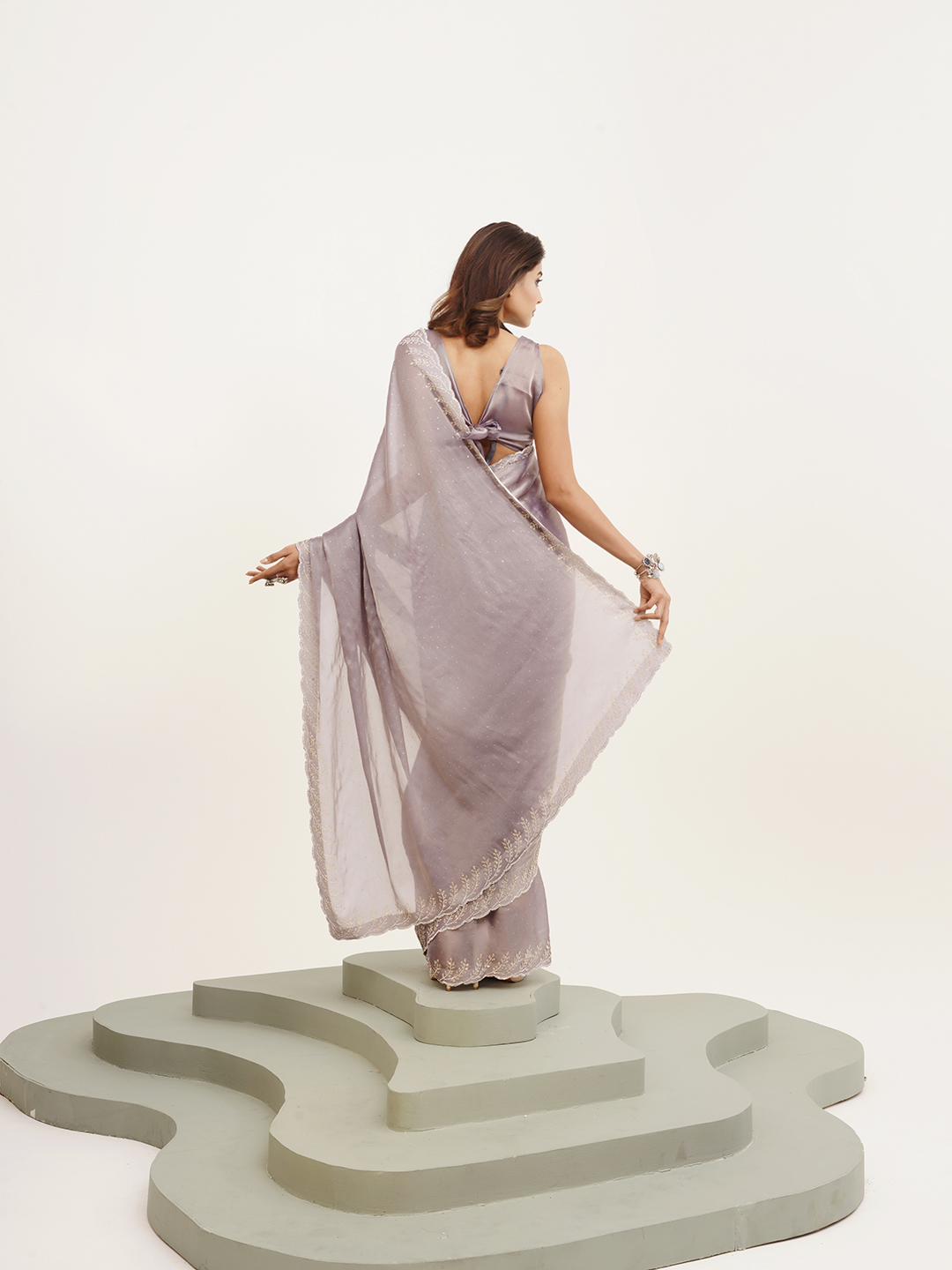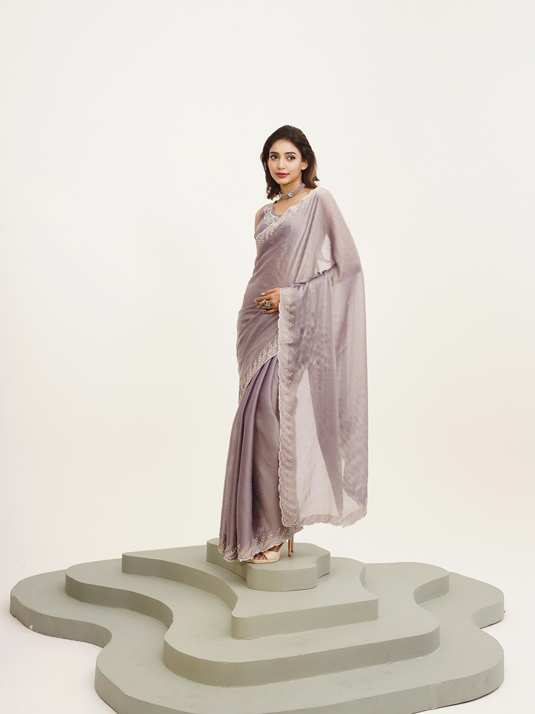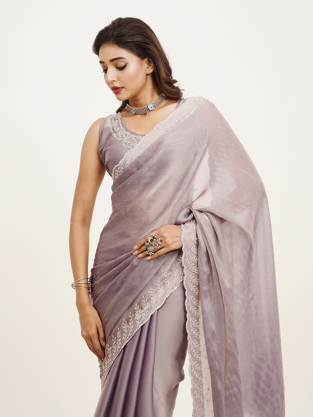 Lavender Color Embellished Beads and Stones Satin Saree For Beautiful Partywear Saree