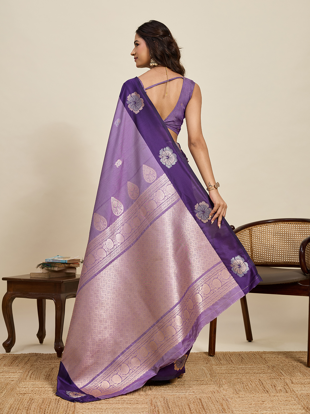 Lavender Color Soft Silk Fabric Woven Jari Designer Ethnic Indian Saree