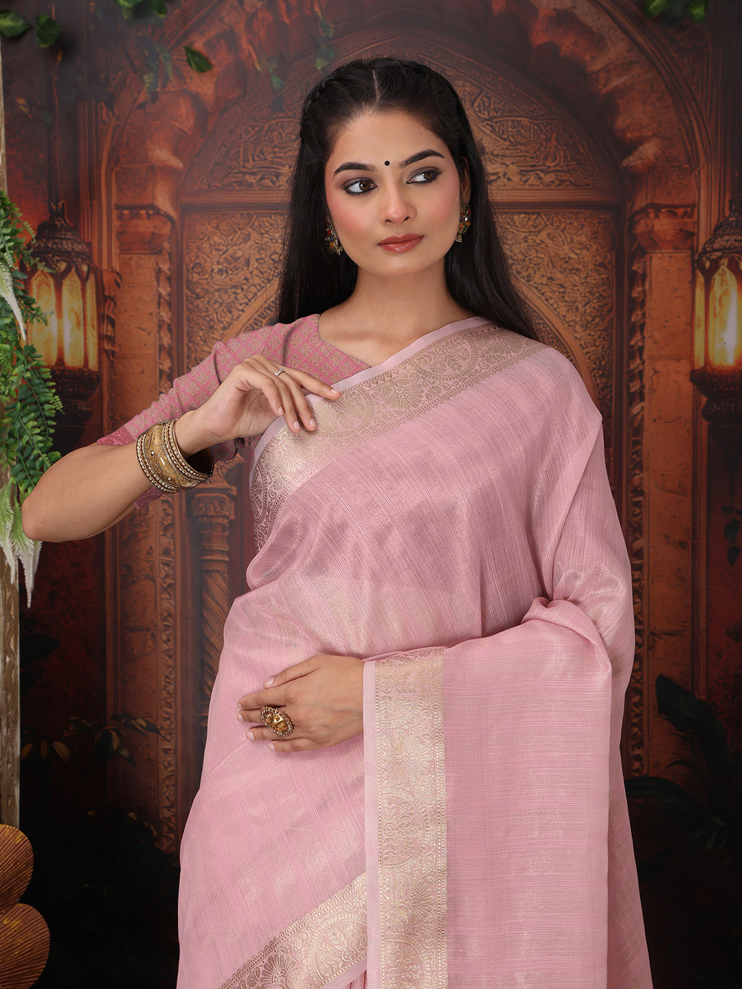 Light Pink Color Organza Fabric Woven Designer Trendy Ethnic Saree