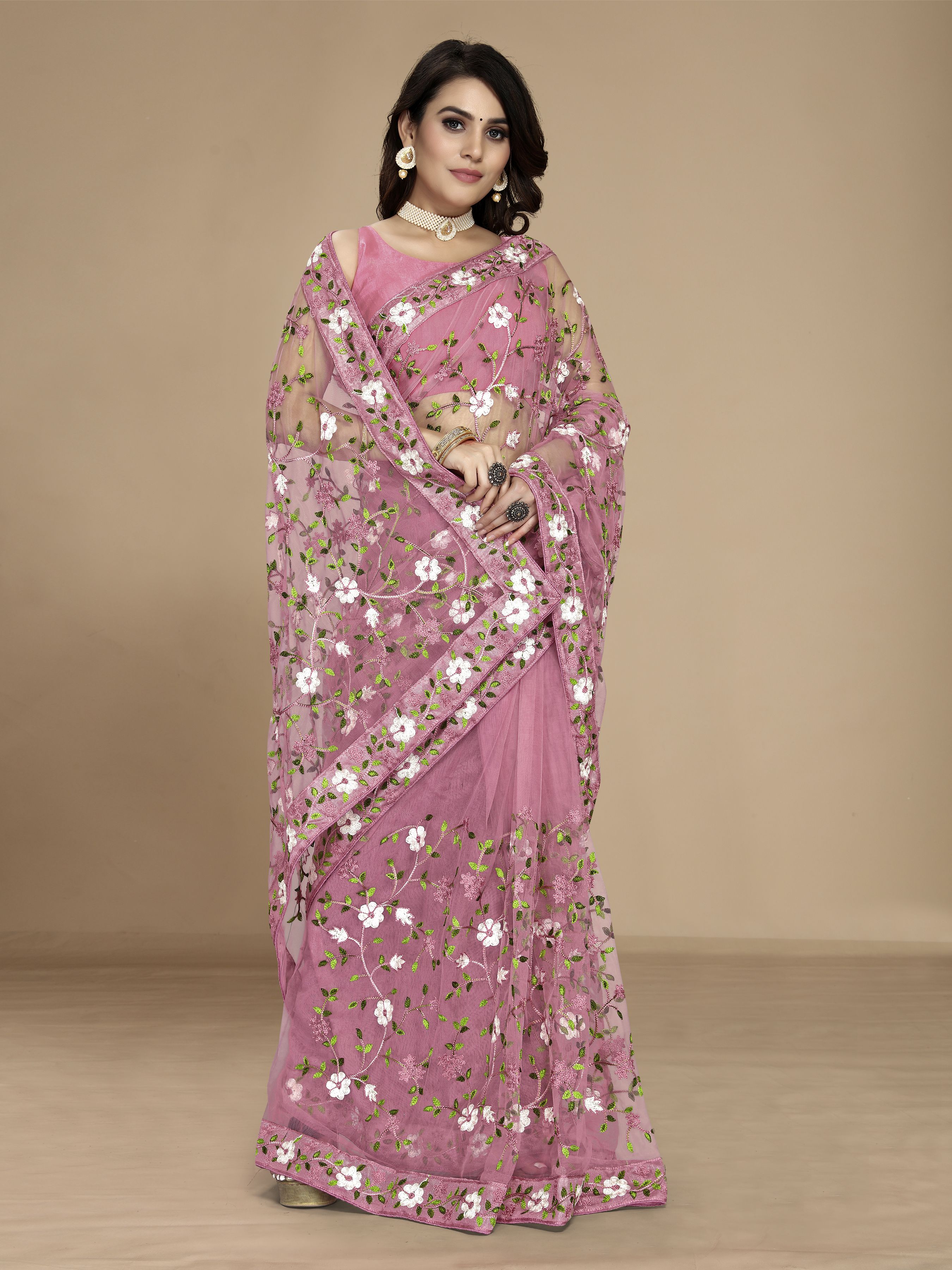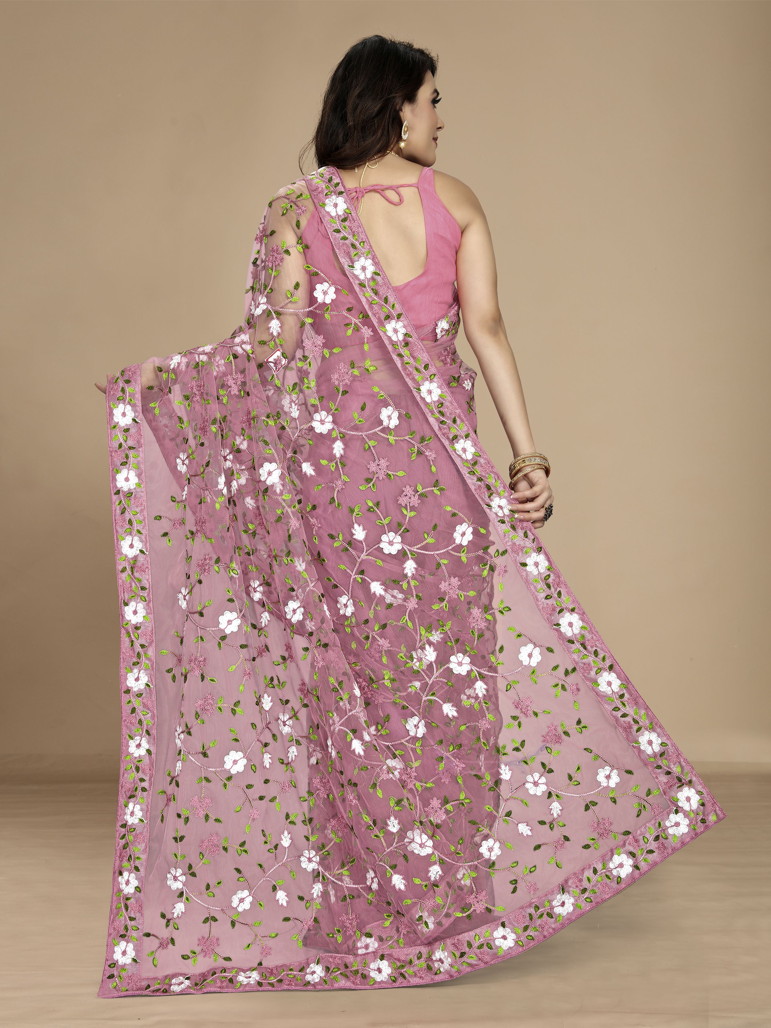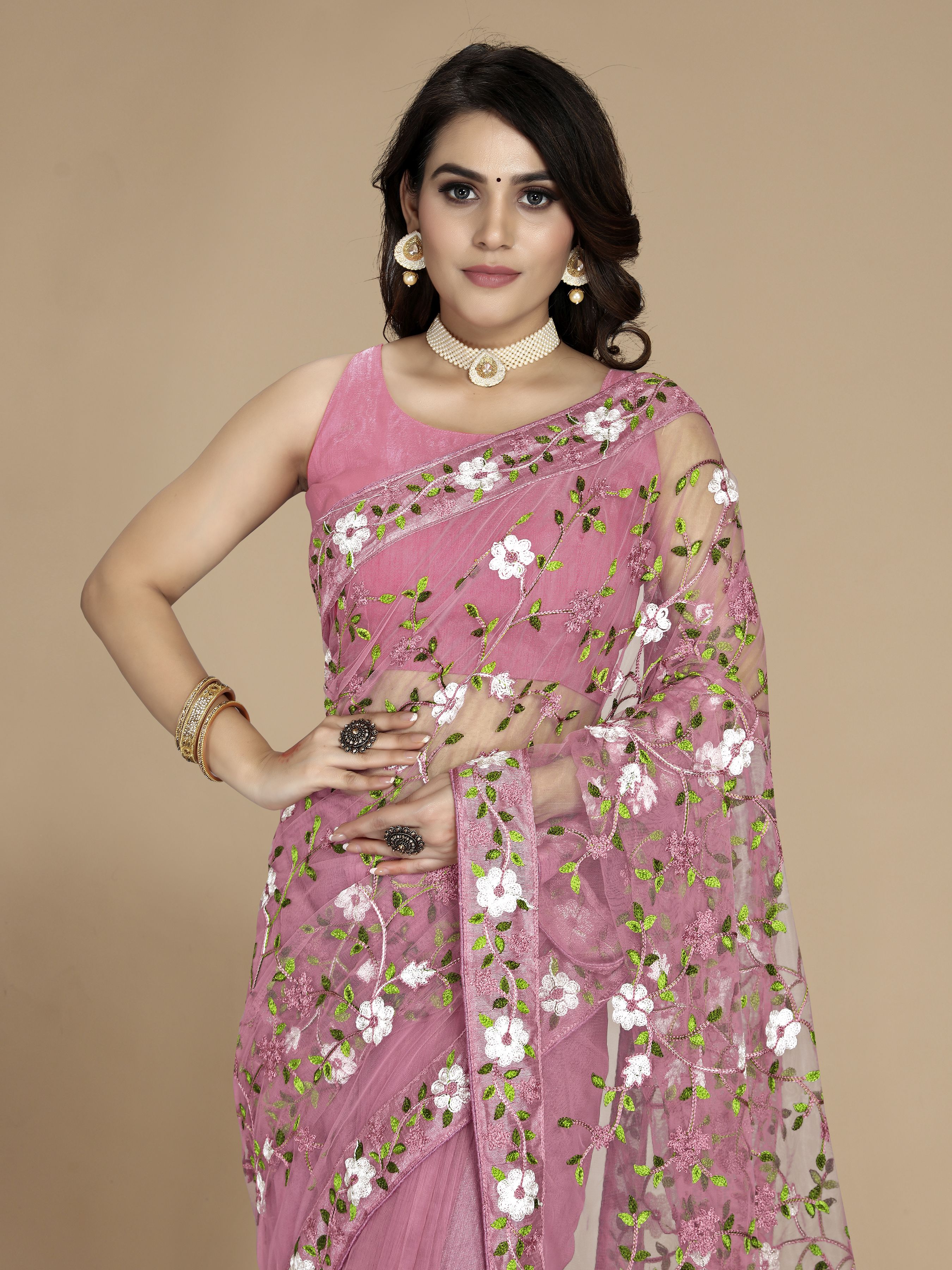 Light Pink Color Soft Net Fabric Designer Multy Thread Embroidery Work Smart Partywear Saree