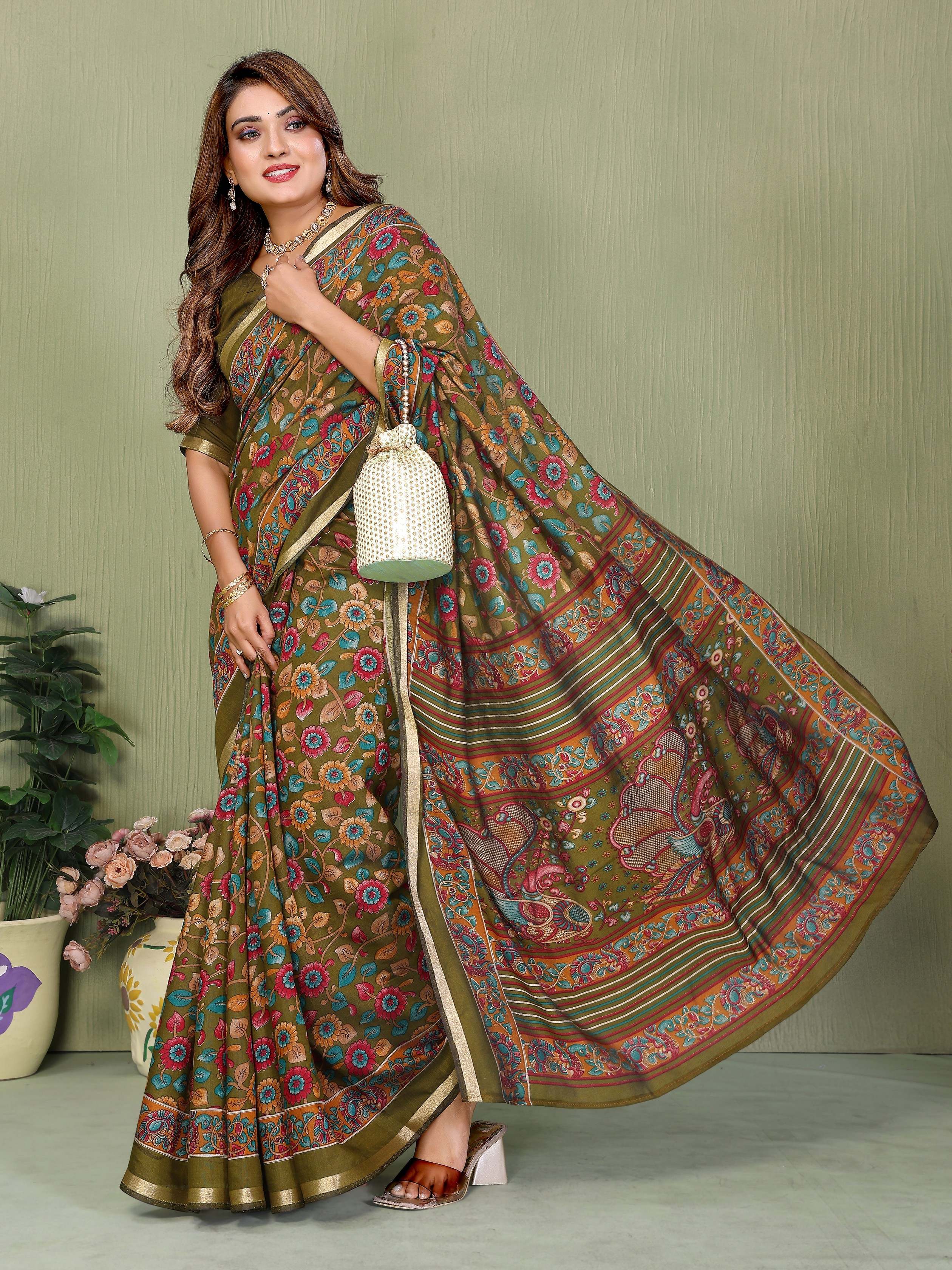 Mahendi Color Mul Cotton Fabric Designer Printed Partywear Saree