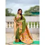 Mahendi Color Paithani Silk Woven Meenakari Jacquard Designer Heavy Wedding Special Saree