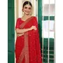 Maroon Color Embroidery Work Chiffon Fabric Beautiful Ceremonial Saree