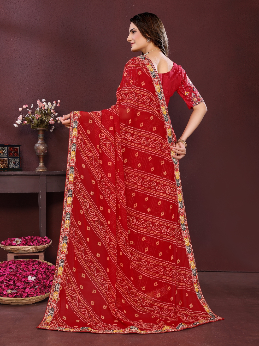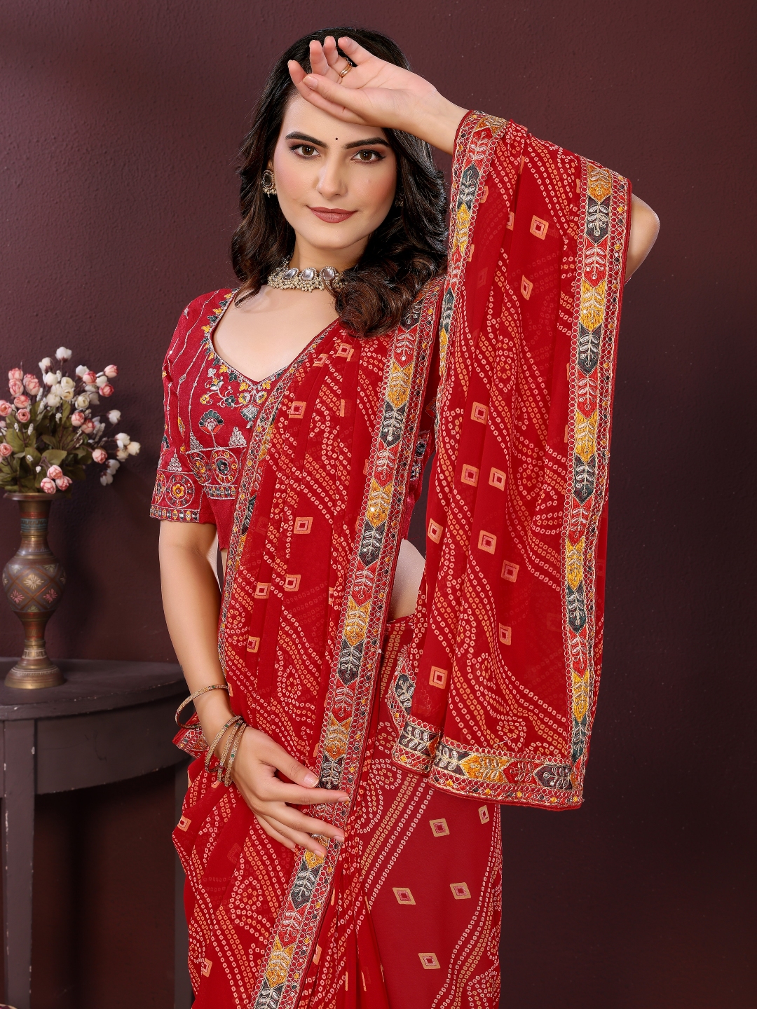 Maroon Color Georgette Fabric Bandhej Printed Traditional Saree