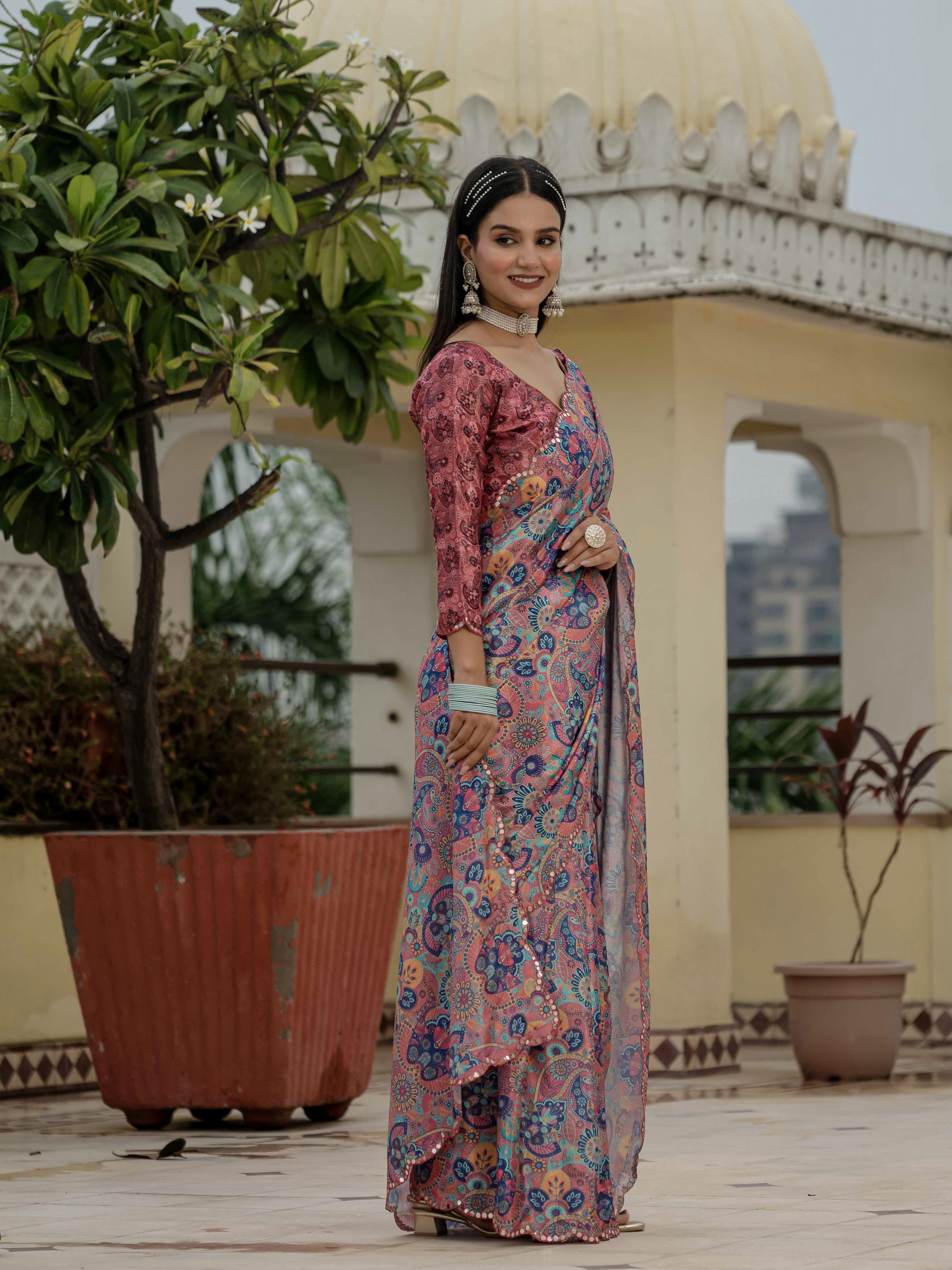 Multy Color Stylish Ready To Wear Chinon Fabric Partywear Saree