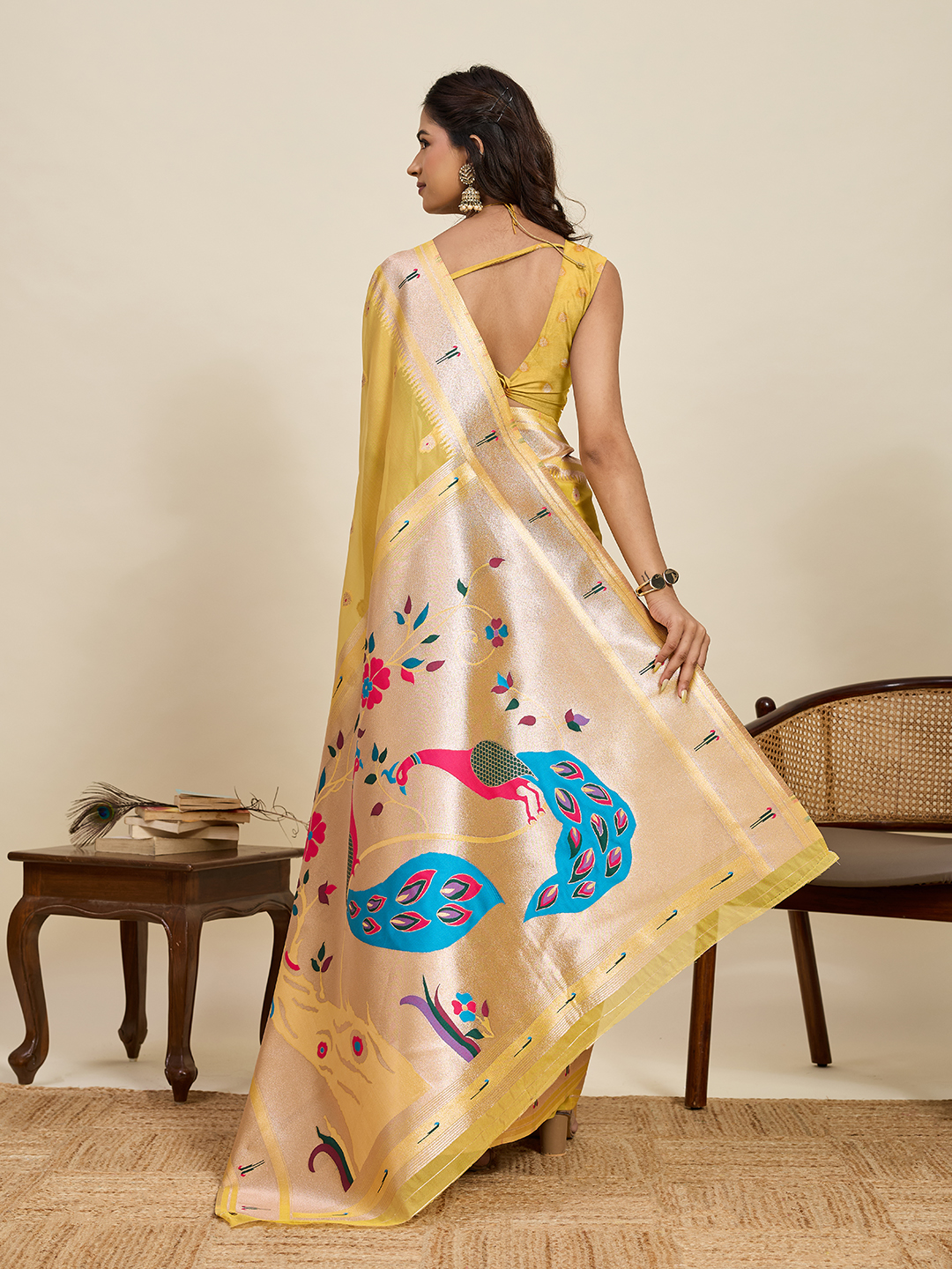Mustard Color Cotton Silk Fabric Wevon Meenakari Designer Ceremonial Saree