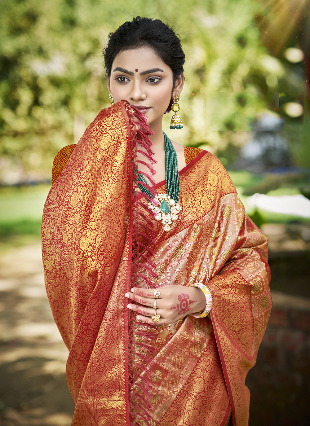 Mustard Color Dharmavaram Fabric Heavy Woven Designer Wedding Wear Saree