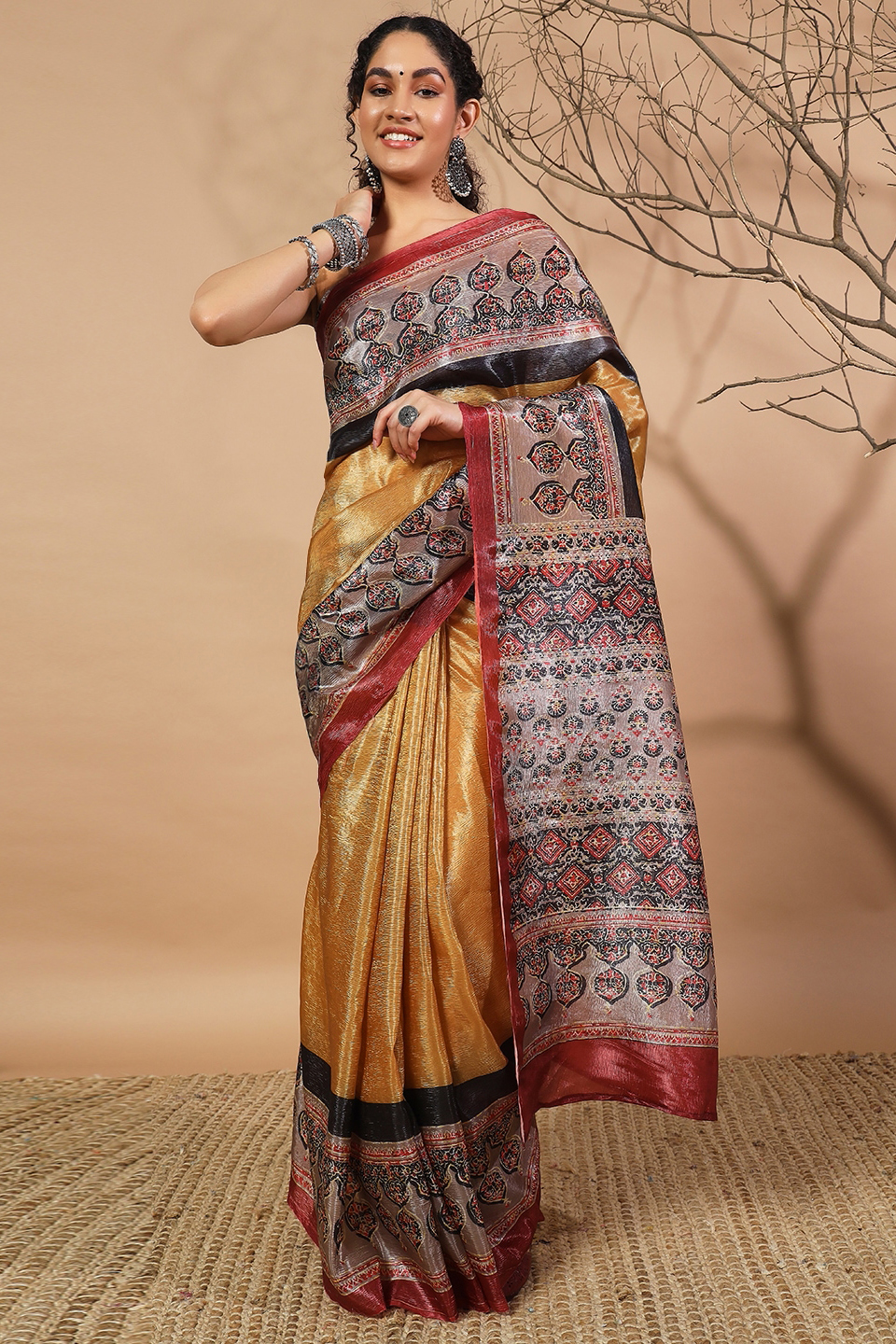 Mustard Color Tissue Fabric Designer Digital Printed Fancy Trendy Saree