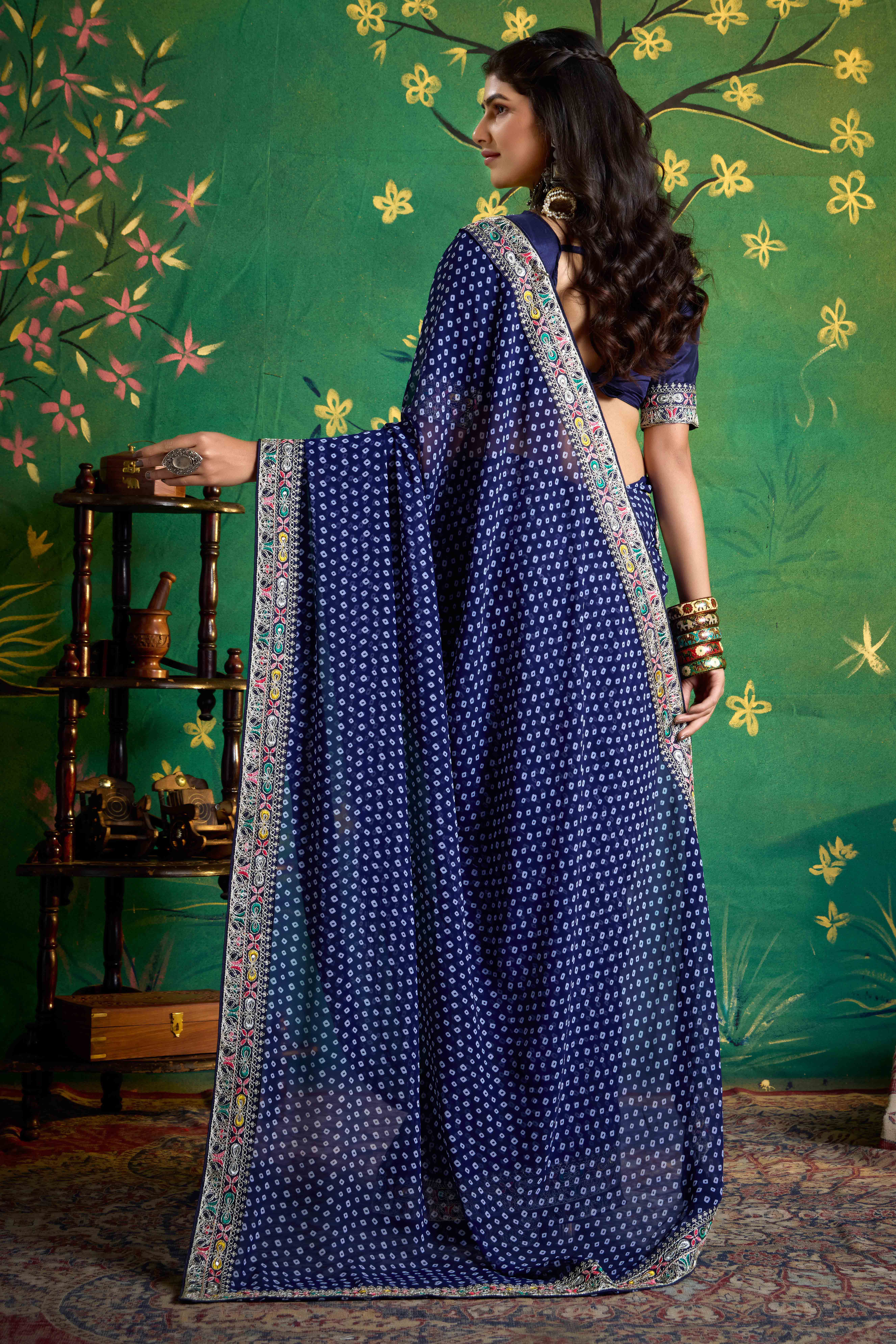 Navy Blue Color Faux Fabric Festive Special Partywear Saree
