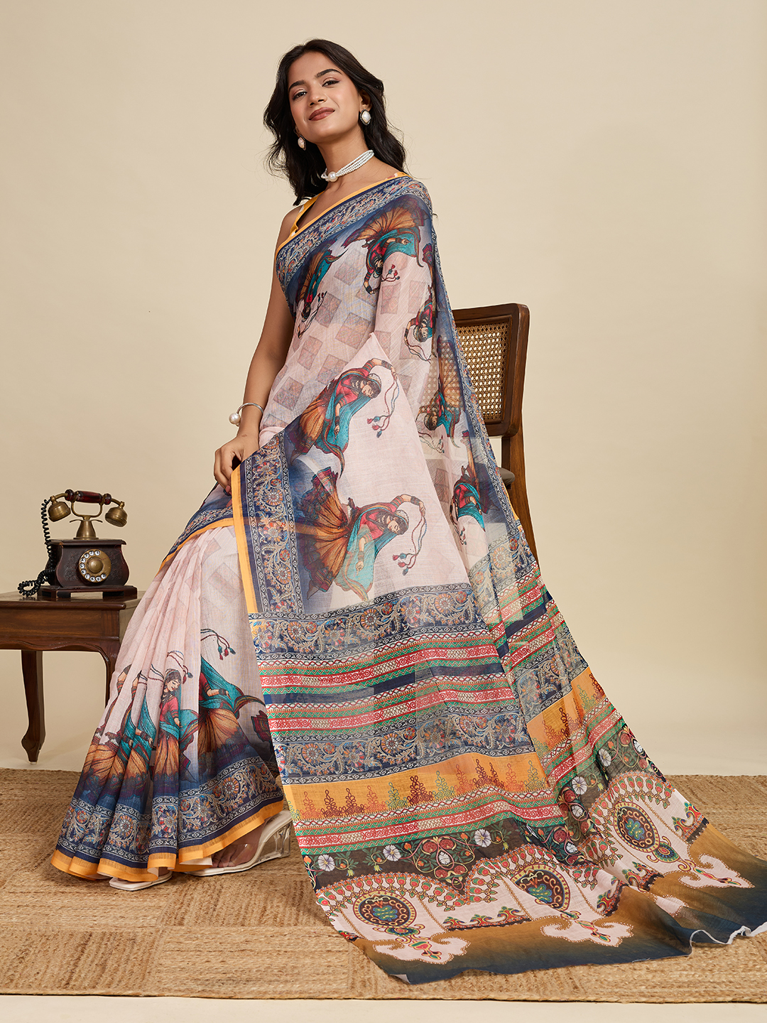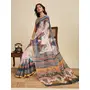 Off White Color Linen Fabric Beautiful Woven Designer Ethnic Casual Saree