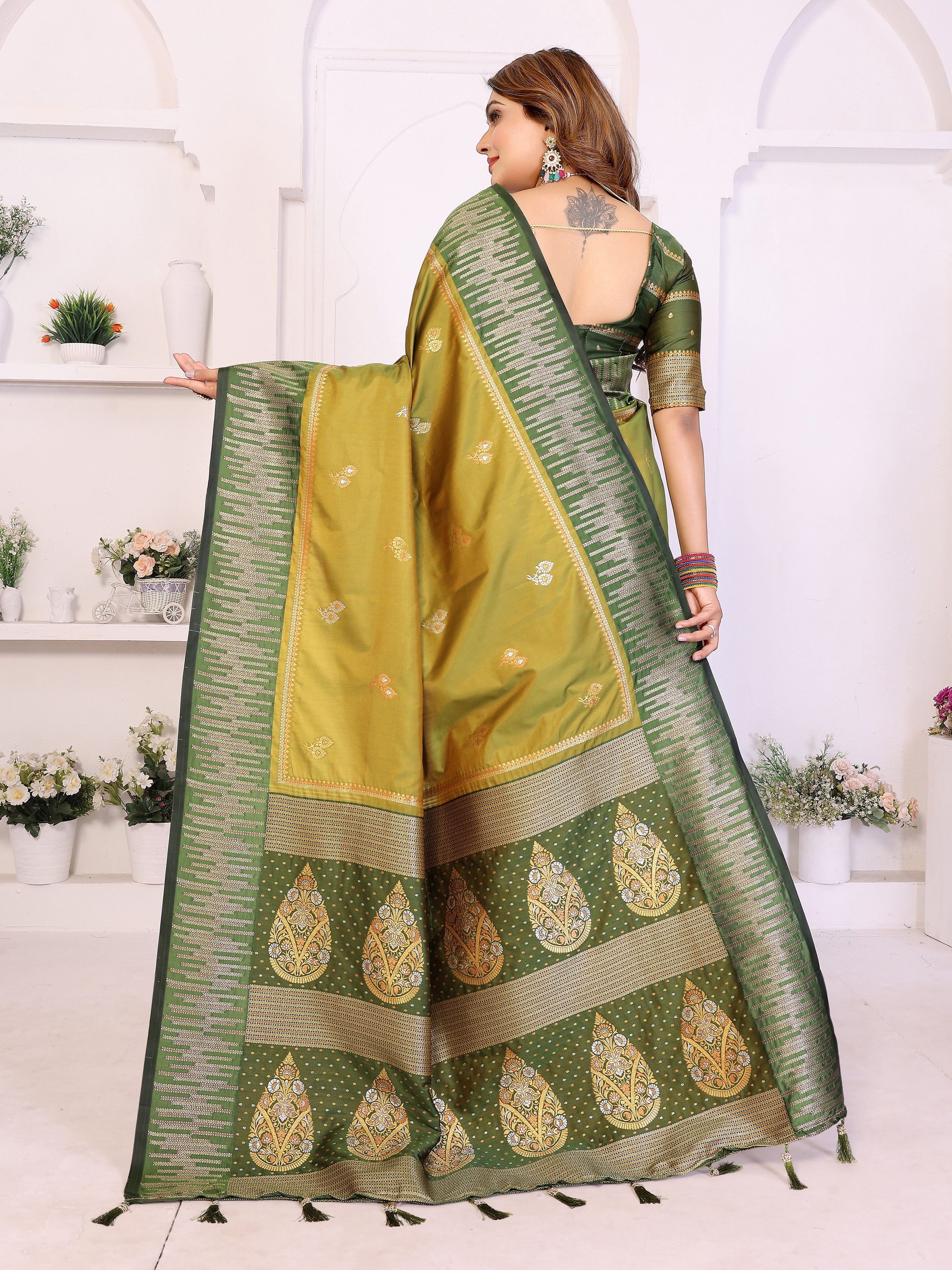 Olive Color South Soft Silk Fabric Woven Rich Pallu Designer Ceremonial Saree