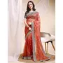 Orange Color Banarasi Crush Fabric Ethnic Embroidered Partywear Saree