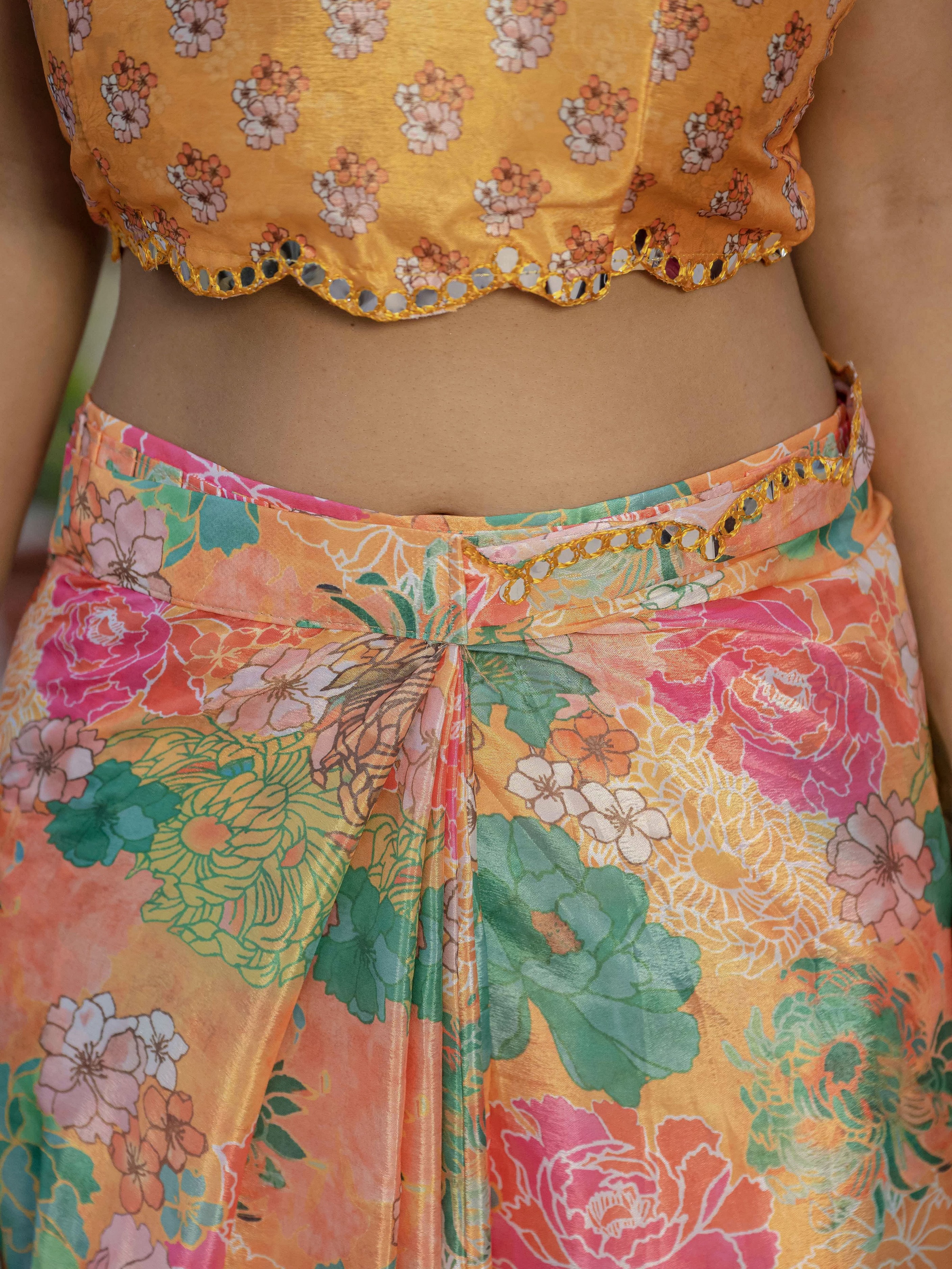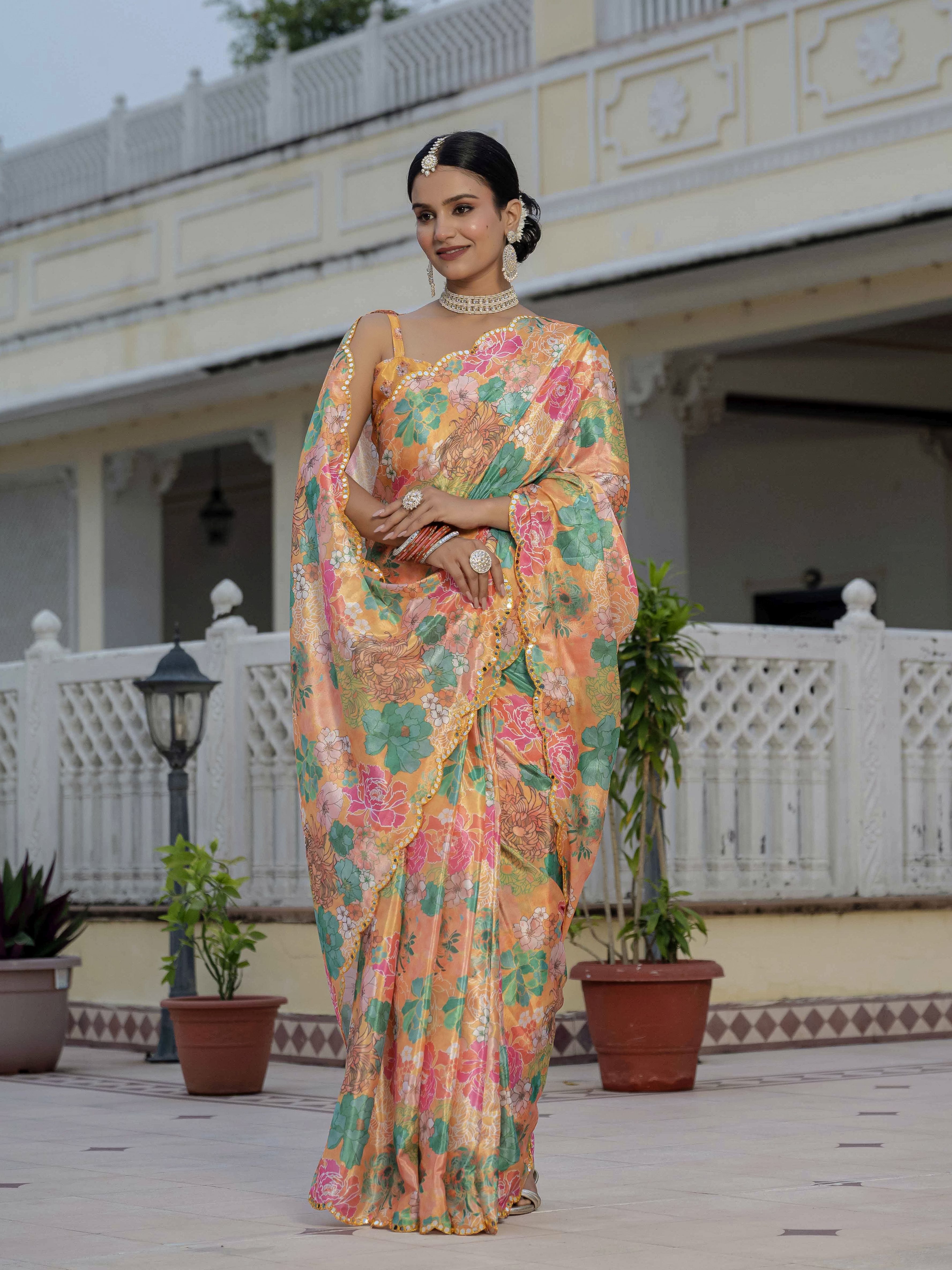 Orange Color Graceful Chinon Fabric Smart Girlie Printed Ready To Wear Saree