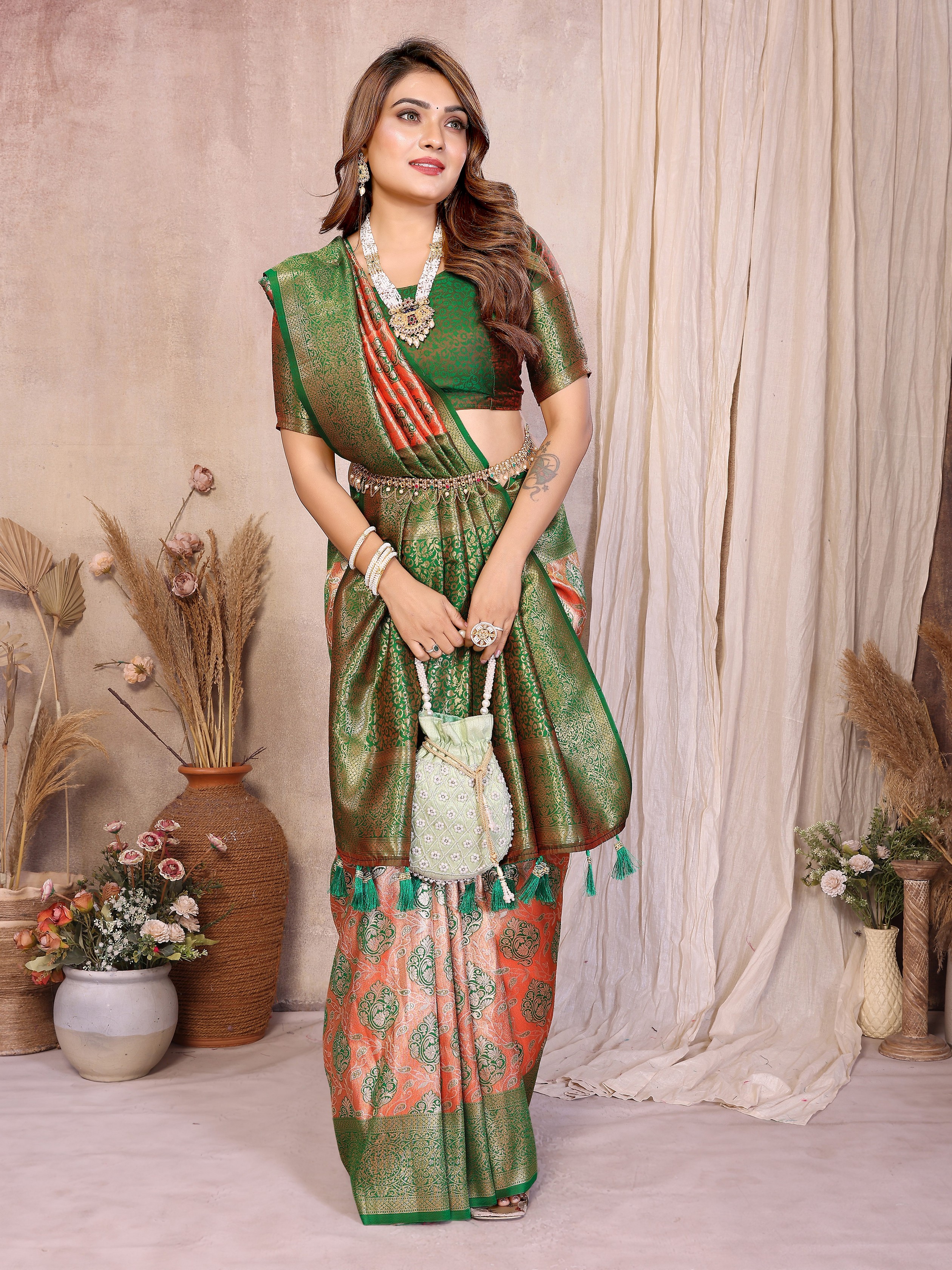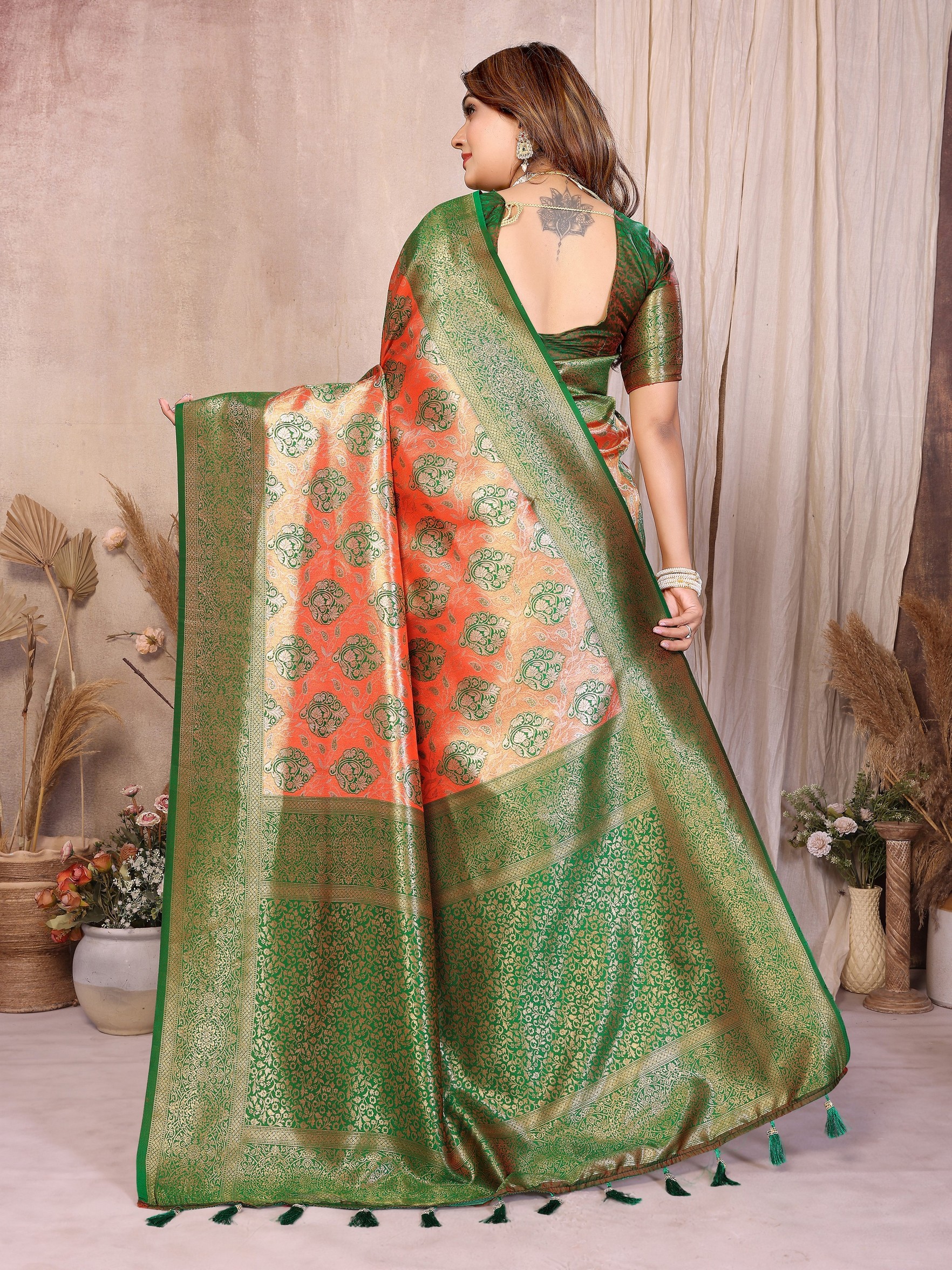 Orange Color Heavy Rich Banarasi Tissue Silk For Ceremonial Traditional Looks