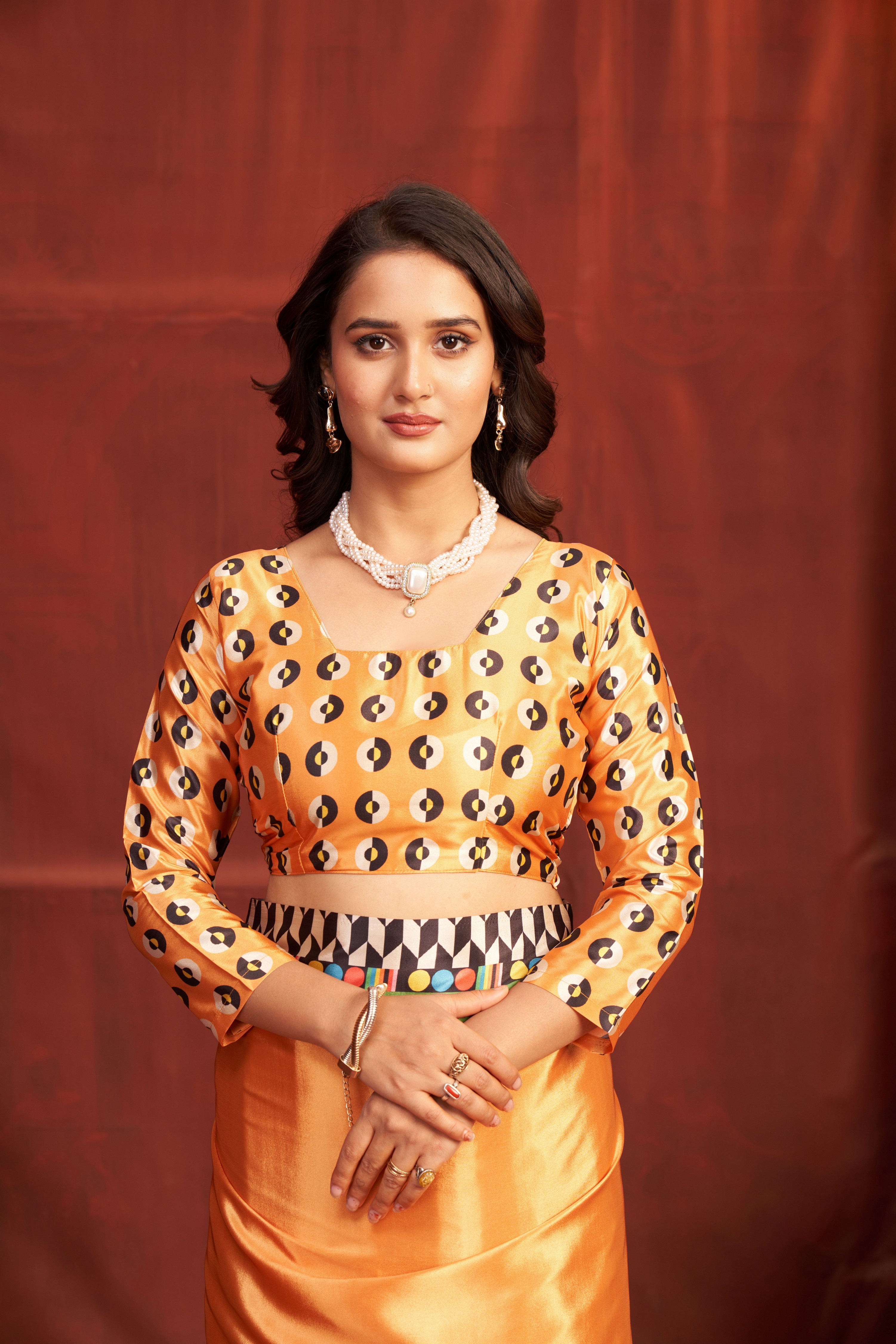 Orange Color Malai Crepe Silk Fabric Designer Digital Printed Girlie Fashinova Saree