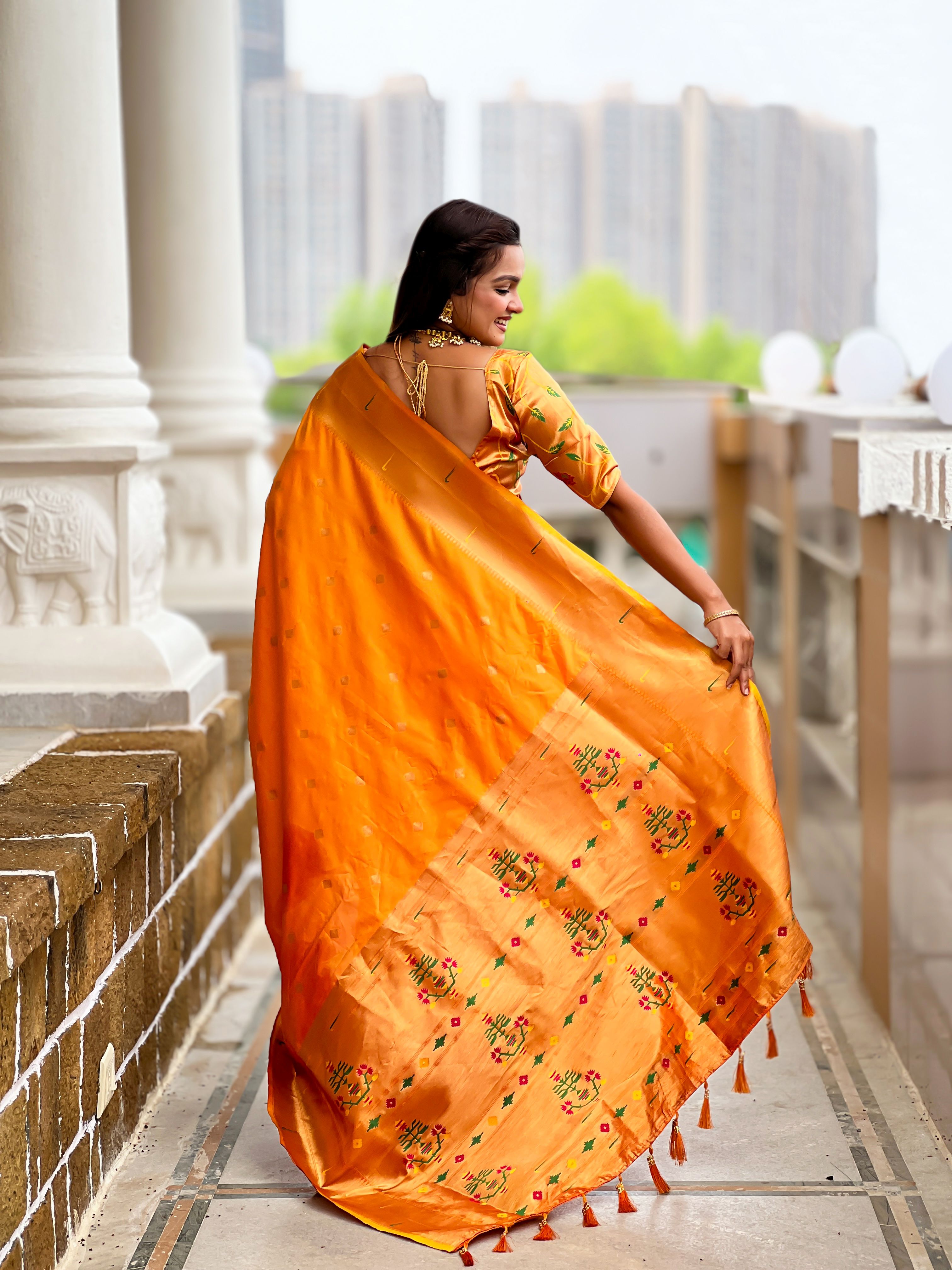 Orange Color Paithani Silk Woven Jacquard Jari Designer Ethnic Saree