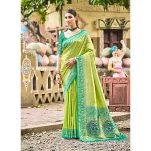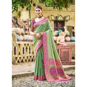 Green Color Kanjivaram Silk Fabric...