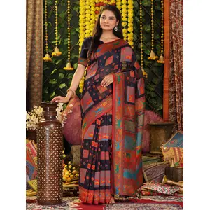 Navy Blue Color Linen Cotton Fabric...