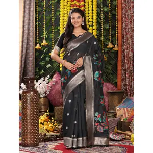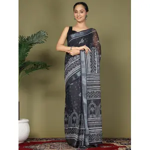 Black Color Linen Cotton Fabric...