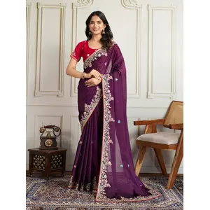 Purple Color Star Georgette Fabric...
