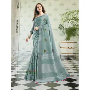 Green Color Linen Fabric...