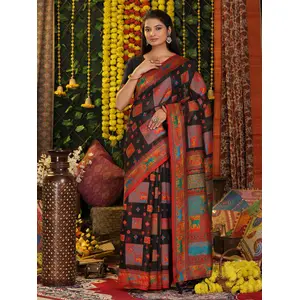 Black Color Linen Cotton Fabric...