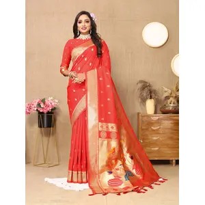 Red Color Paithani Silk Woven...