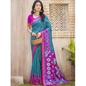 Teal Green Color Pochampalli Silk...