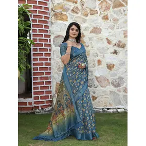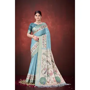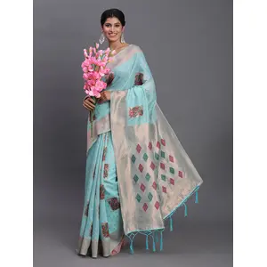 Sky Blue Color Linen Cotton Woven...