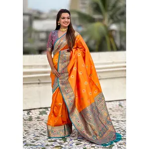 Orange Color Soft Silk Fabric Wevon...