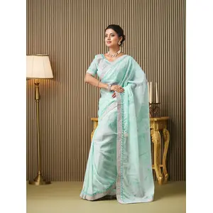 Turquoise Blue Color Organza fabric...
