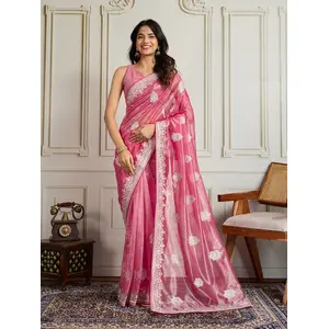 Pink Color Twill Net Fabric Designer...