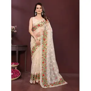 Beige Color Net Fabric Designer...