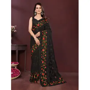 Black Color Net Fabric Designer...