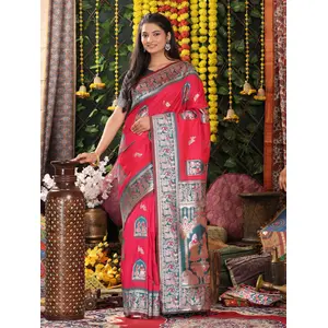 Pink Color Blended Silk Fabric Woven...