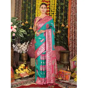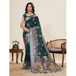 Teal Color Two Tone Satin Silk Saree...