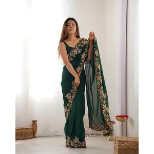 Green Color Vichitra Silk Fabric...