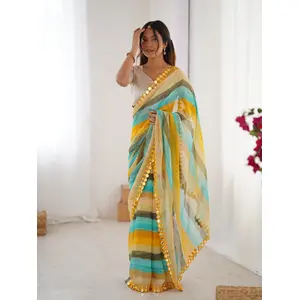 Yellow Color Chiffon Fabric Designer...