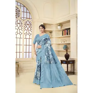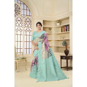 Sky Blue Color Linen Cotton Wevon...